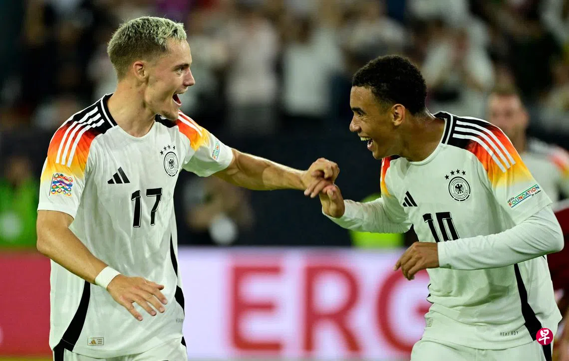 (杜塞尔多夫综合电)欧洲足球锦标赛后告别多位老臣的德国队,本地时间星期天(9月8日)凌晨在欧洲国家联赛A级第三组首轮比赛,凭借穆西亚拉(Musiala)贡献一射三传,主场以5比0痛宰匈牙利,取得开门红。同组的荷兰队也在主场5比2轻取波黑。