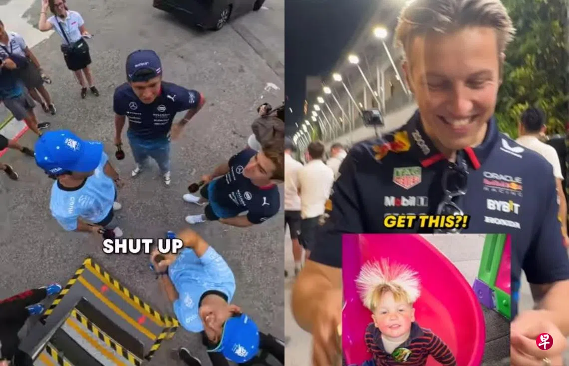 威廉姆斯车手克拉平托(Colapinto)看到自己奇异表情的照片后摆出拒签名的动作,而拉塞尔最后将红牛的签名笔带走了。