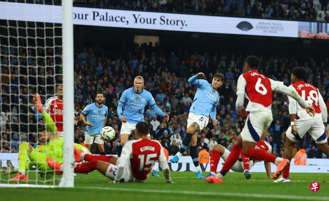 在新加坡时间星期天(9月22日)晚的英超关键战役上,挪威前锋哈兰德(Haaland)在开赛后九分钟攻入个人在曼市的第100个进球,并为主场作战的曼市建立1比0的优势。不过,炮兵随后凭卡拉菲奥里(Calafiori)在第22分钟及加布里埃尔(Gabriel)在半场伤停补时第一分钟的进球扭转局势,以2比1领先上半场。