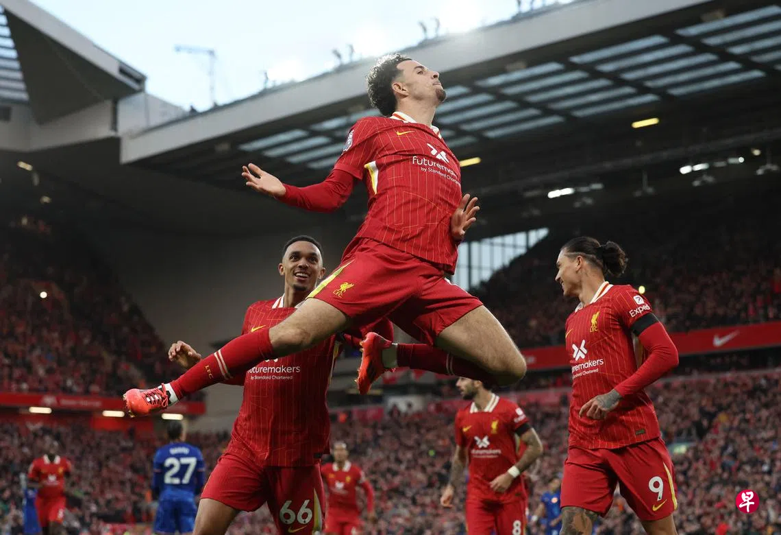 (伦敦综合电)“红军”利物浦(Liverpool)在新加坡时间星期天(10月20日)的英超联赛主场2比1力挫强敌“蓝军”切尔西(Chelsea),继续在英超积分榜上统领群雄。曼市(Man City)则在另一场比赛中凭借斯通斯(Stones)的伤停补时进球,2比1逆转狼队(Wolves)获胜,以一分微差紧随红军之后。