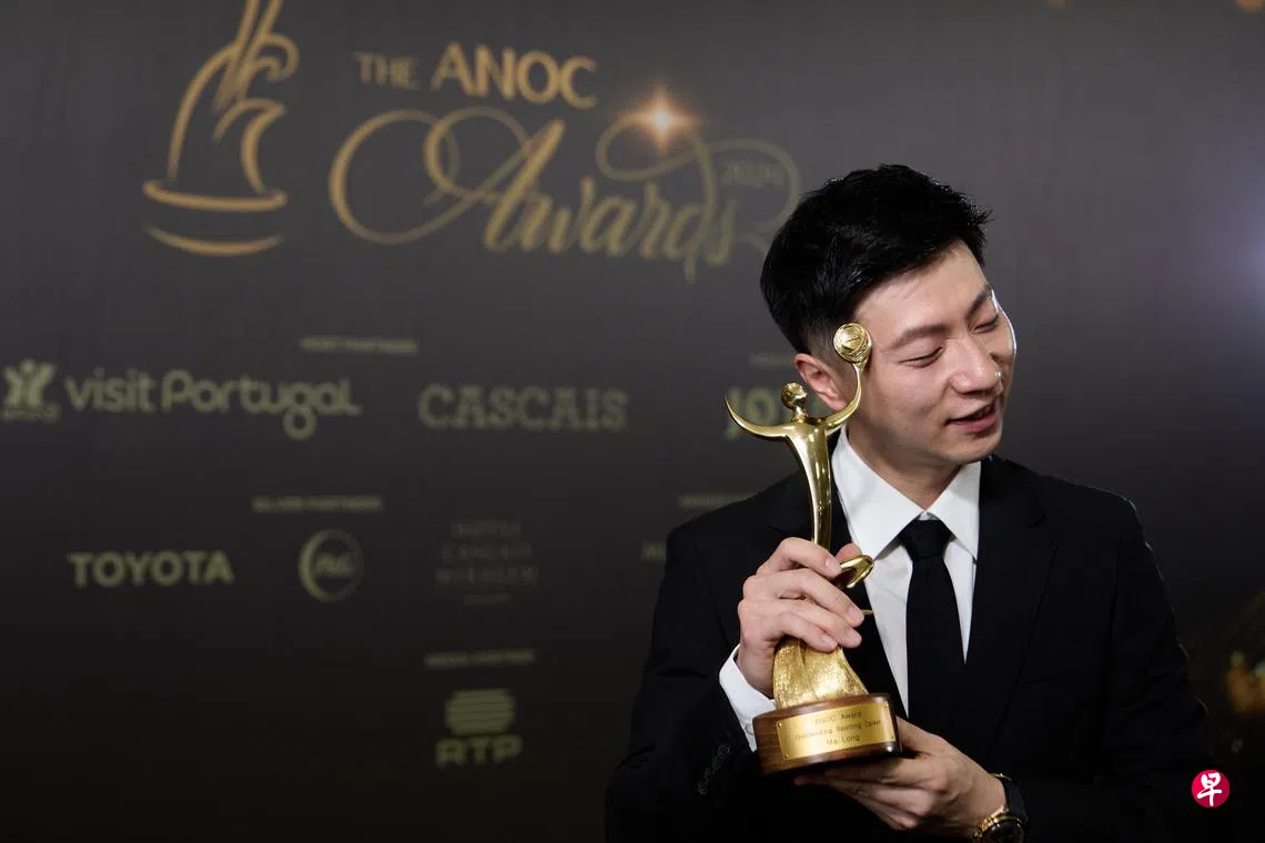 早说参加四届奥运会的中国乒乓球名将马龙,日前在国际奥协颁奖典礼上,被授予杰出运动生涯奖。 (新华社)如果我生活在以前的年代,可能也未必能比那些前辈做得更好。——中国乒乓球名将马龙日前在国际奥协颁奖典礼上,被授予杰出运动生涯奖。当被主持人称为“史上最佳乒乓球运动员(GOAT)”时,马龙谦虚回应。 乒乓球早说上一篇拉齐奥意甲5比1痛宰科莫 罗马触底反弹下一篇亨伯特爆冷打败阿尔卡拉斯 晋级巴黎网球大师赛八强购买此文章