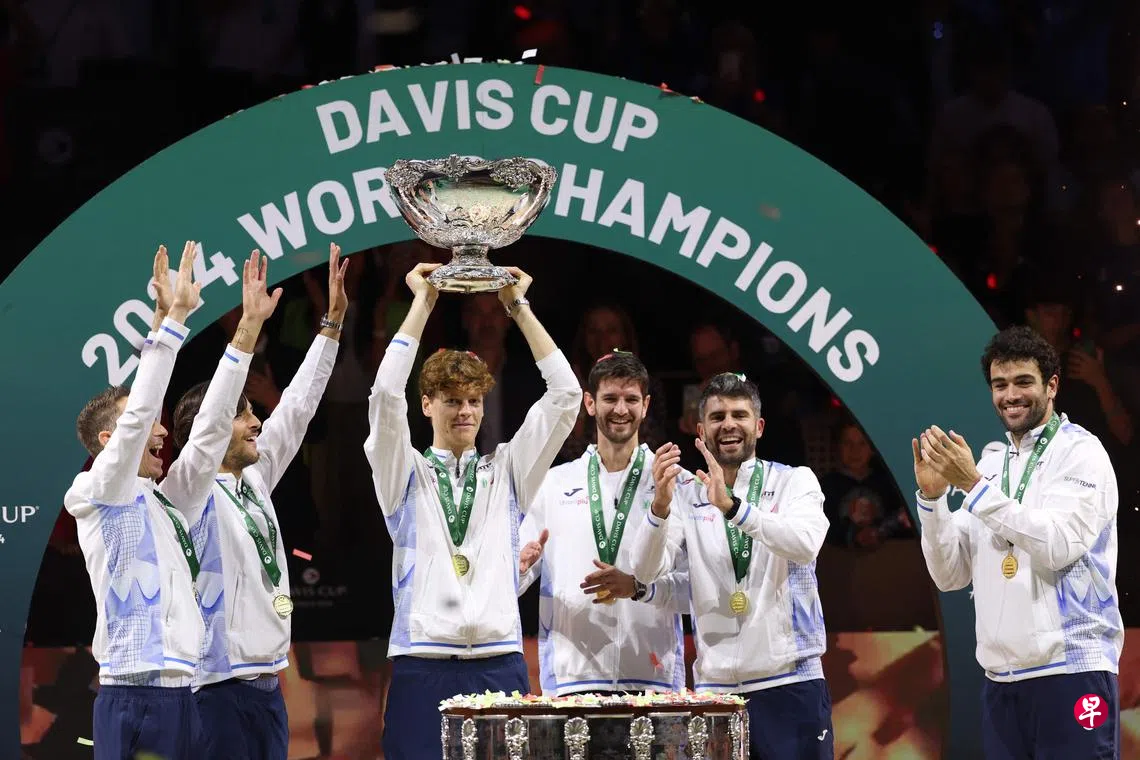 (马拉加综合电)由世界首号球员辛纳(Sinner)压阵的意大利男子网球队在星期天(11月24日)的戴维斯杯决赛上以2比0击败荷兰,连续第二次夺冠,成功捍卫奖杯。