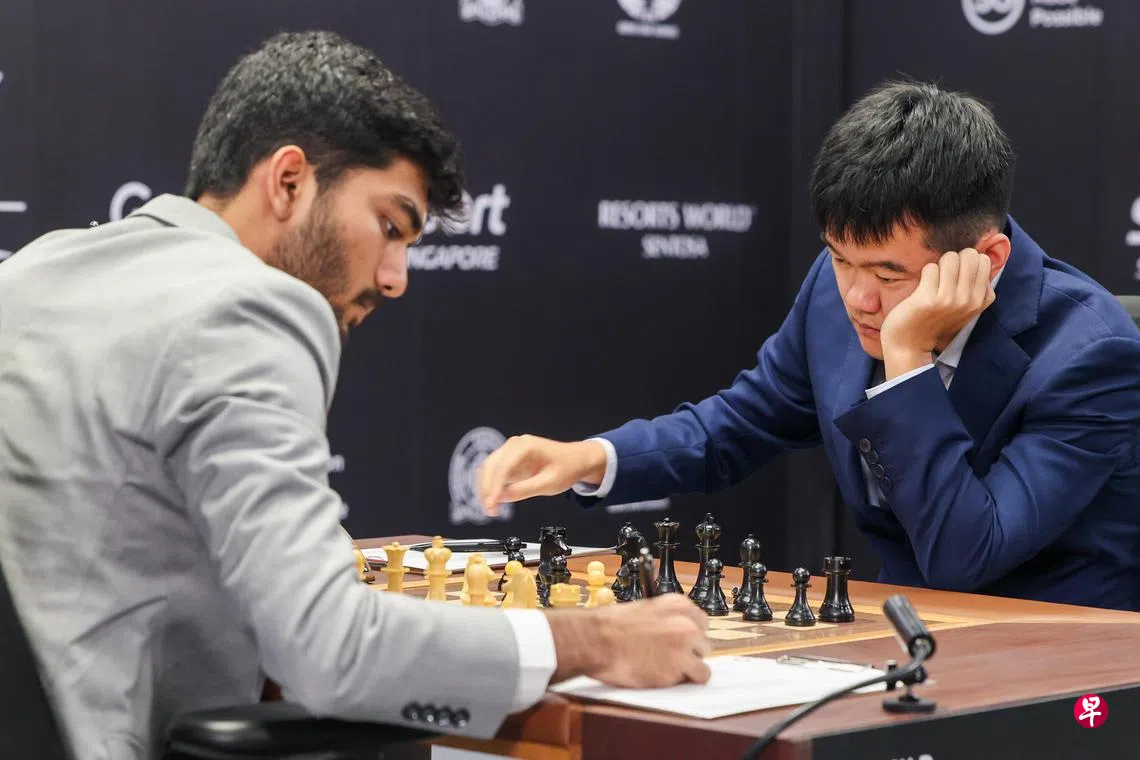 国际象棋世界锦标赛星期一(11月25日)在圣淘沙名胜世界的逸濠酒店(Equarius Hotel)展开首日交锋,中国的丁立人在第一场比赛中战胜印度的古克什(Gukesh),先下一城。