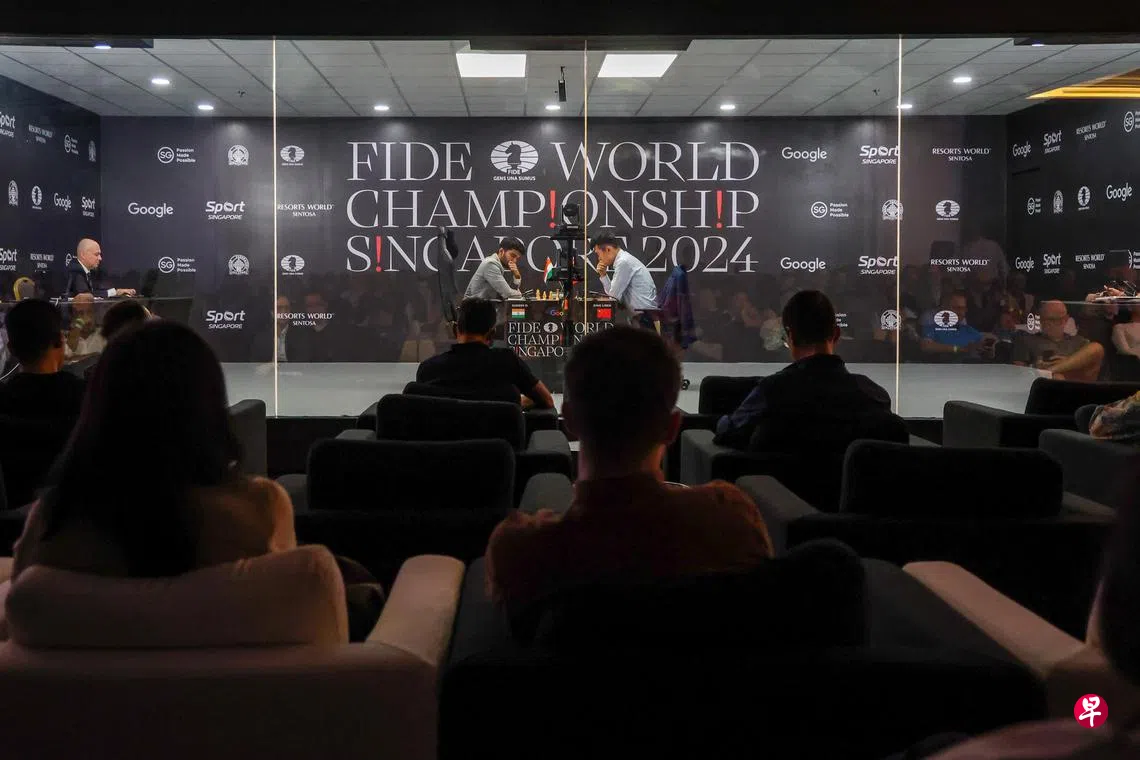 继首日取得胜利后,来自中国的卫冕冠军丁立人在新加坡国际象棋世锦赛次日和18岁的印度挑战者古克什握手言和,双方在星期二(11月26日)各获0.5分,丁立人则以1.5比0.5暂时领先。