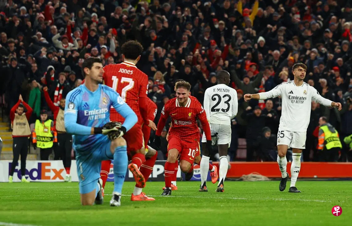 英超领头羊红军最后一次在欧洲赛场击败皇马是在2009年。星期四凌晨,他们凭借麦卡利斯特(Mac Allister)与哈克波(Gakpo)的下半场进球,再次击败这支欧冠史上夺冠最多的西甲劲旅。皇马的法国球星姆巴佩(Mbappe)延续低迷表现,在比赛中踢失一个罚球,导致皇马错失扳平比分、扭转战局的大好机会。红军的主力前锋萨拉赫(Salah)随后也射失一个罚球。