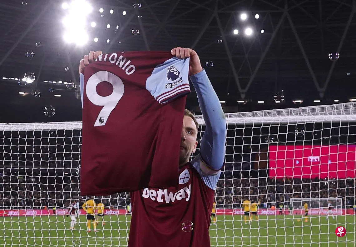 (伦敦综合电)“铁锤帮”西哈姆(West Ham)新加坡时间星期二(12月10日)凌晨在英超联赛主场2比1拿下狼队(Wolves),将胜利献给日前遭遇严重车祸受伤的前锋安东尼奥(Antonio)。