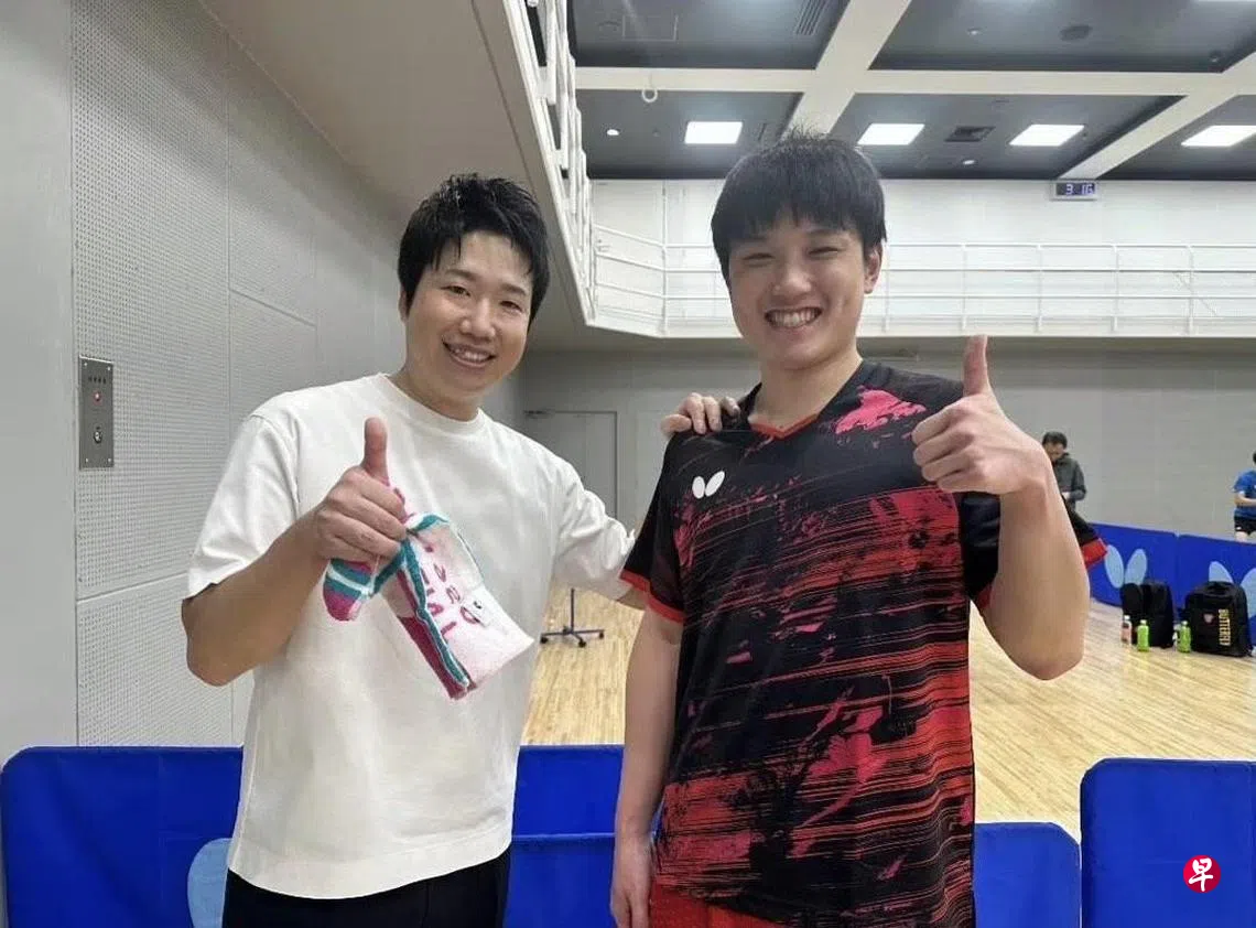 ——日本乒乓球好手张本智和在训练时遇到已退役的奥运冠军前辈水谷隼,并对练大约10分钟,张本智和之后在社交媒体发文称赞水谷隼实力依旧。