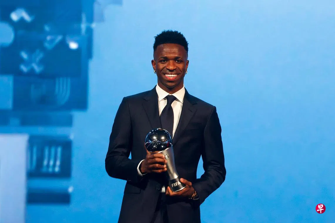 (多哈综合电)儿时在巴西街道上赤脚踢球,也在贫民窟里目睹过贫穷和犯罪,巴西球星维尼修斯(Vinicius)星期三(12月18日)当选国际足联年度最佳男球员,成为历史上第一个“00后”世界足球先生。