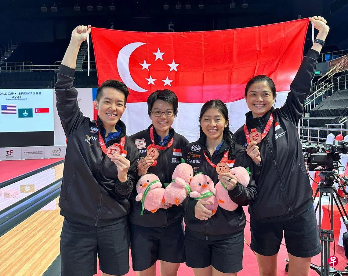 我国女队星期二(1月14日)在香港举行的保龄球世界杯团体赛摘下铜牌,让新加坡以三枚铜牌结束征途。