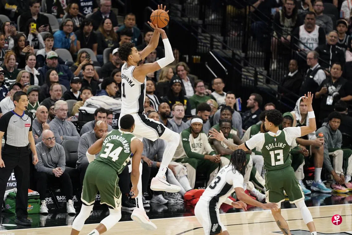 (洛杉矶法新电)法国新星文班亚马(Wembanyama)拿下30分,协助圣安东尼奥马刺(San Antonio Spurs)在新加坡时间星期六(2月1日)打出球队本赛季最高得分,以144比118大胜密尔沃基公鹿(Milwaukee Bucks)。