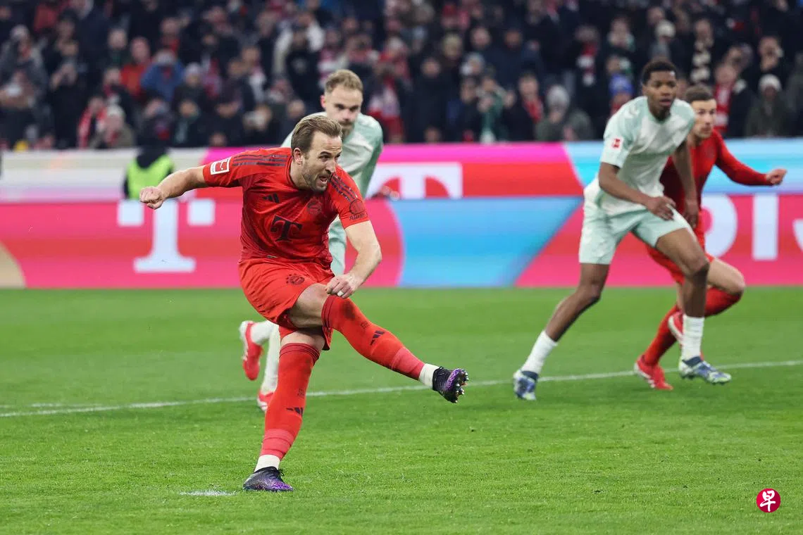 来到完场补时阶段,拜仁再次获判罚球,凯恩操刀建功,为球队锁定胜局之余,也攻进他本赛季的第21个联赛进球。