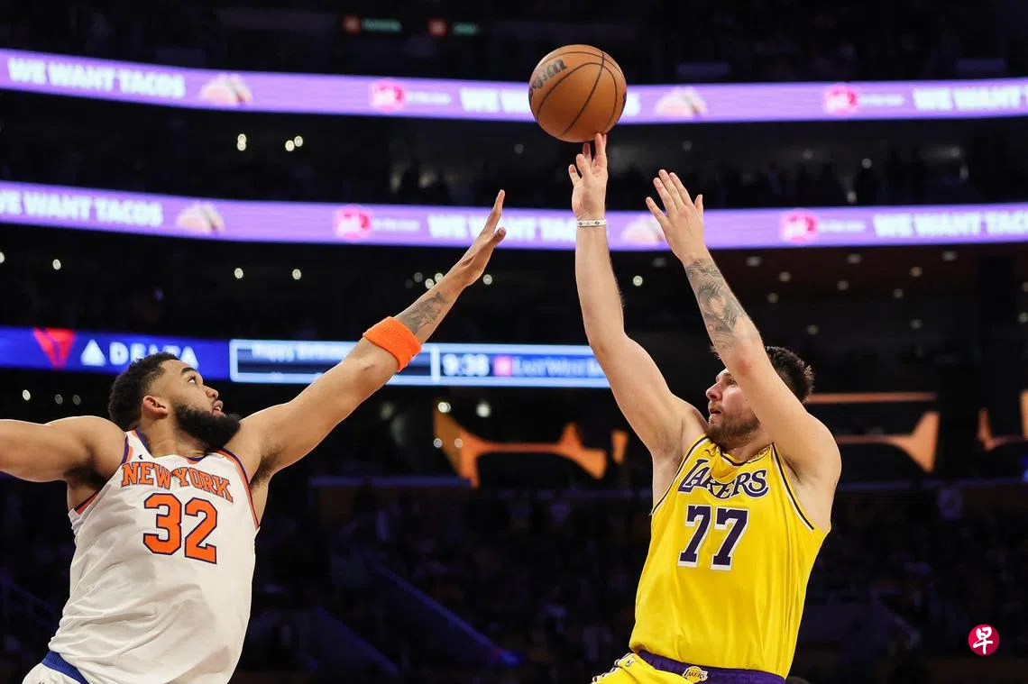 (洛杉矶综合电)东契奇(Doncic)和詹姆斯(James)在新加坡时间星期五(3月7日)合砍63分,一同率领洛杉矶湖人(LA Lakers)以113比109逆转险胜来犯的纽约尼克斯(New York Knicks),迎来八连胜。