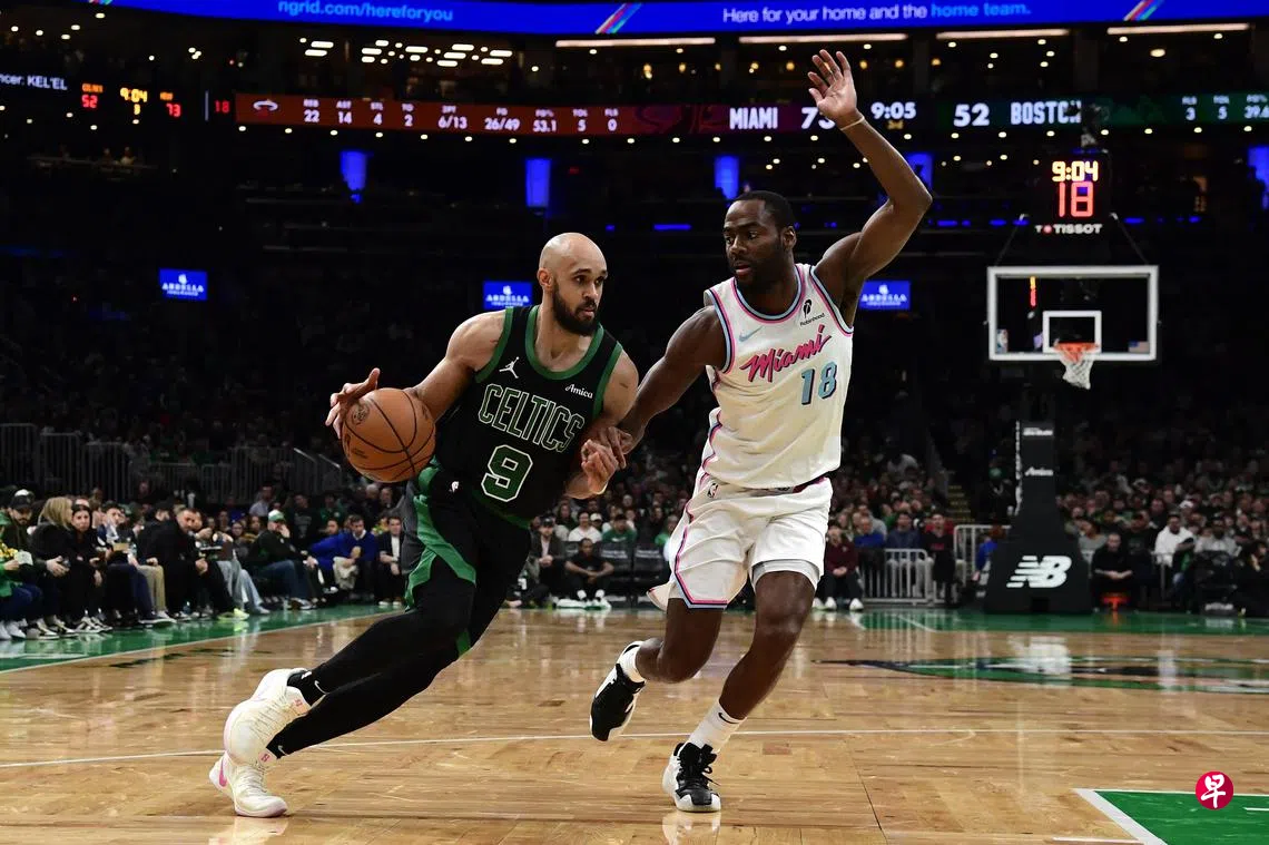 (迈阿密综合电)在新加坡时间星期四(4月3日)上午进行的美国职业篮球赛(NBA)常规赛中,迈阿密热浪(Miami Heat)客场以124比103横扫“绿衫军”波士顿凯尔特人(Boston Celtics),终结了对手的九连胜。