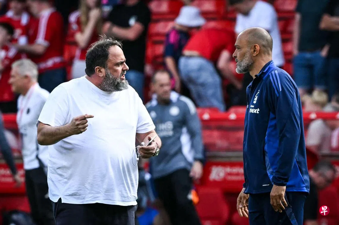 本赛季的英超黑马森林在比赛中未能守住2比1的优势,赛后以62分排在英超第七,距离前五的欧冠席位仅差一分。赛后,森林老板马里纳基斯(Marinakis)来到场内,质问森林主帅桑托(Santo)为什么没有在比赛末端换下受伤的阿沃尼伊(Awoniyi)。