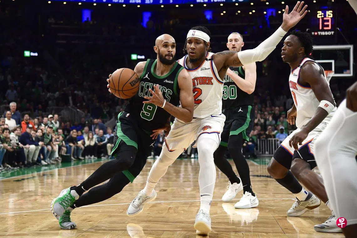 (洛杉矶综合电)上届NBA总冠军波士顿凯尔特人(Boston Celtics)在新加坡时间星期四(5月15日)的美国职业篮球赛(NBA)季后赛中,主场以127比102击败纽约尼克斯(New York Knickers),将东部半决赛的总比分追至2比3,暂逃出局厄运。