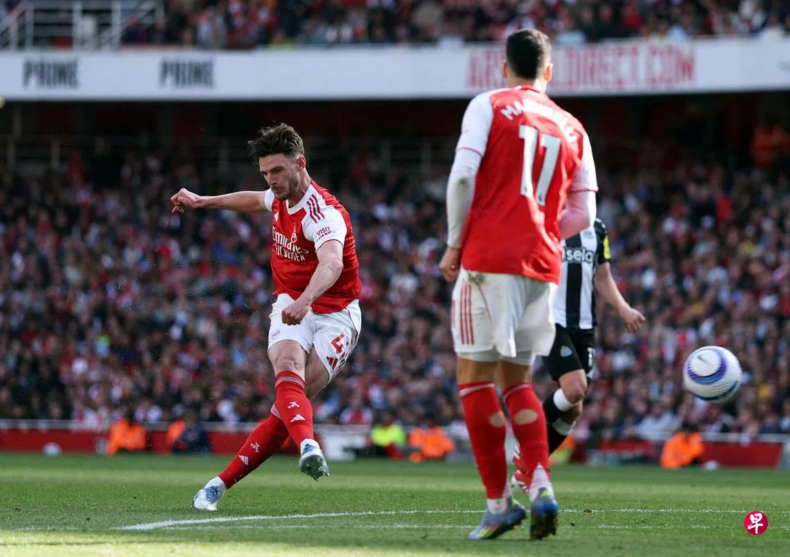 (伦敦综合电)面对来势汹汹的“喜鹊”纽卡斯尔(Newcastle),“炮兵”阿申纳(Arsenal)凭借中场赖斯(Rice)的全场唯一进球,在星期天(5月18日)的英超焦点战中,主场以1比0获胜,在成功守住“老二”之位的同时,也锁定下赛季欧洲冠军联赛资格。