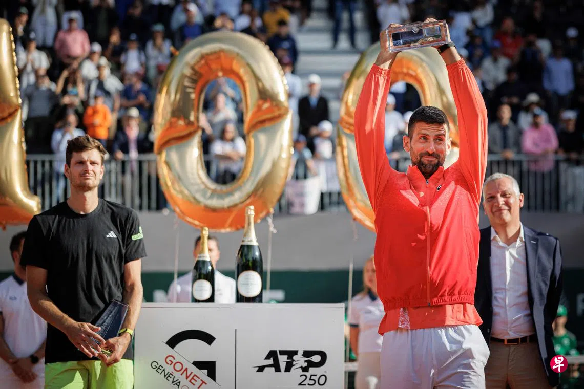 (日内瓦路透电)塞尔维亚天王乔科维奇(Djokovic)在当地时间星期六(5月24日)经历三盘苦战,成功逆转战胜来自波兰的赛会六号种子胡尔卡奇(Hurkacz),夺得职业生涯第100个巡回赛冠军。