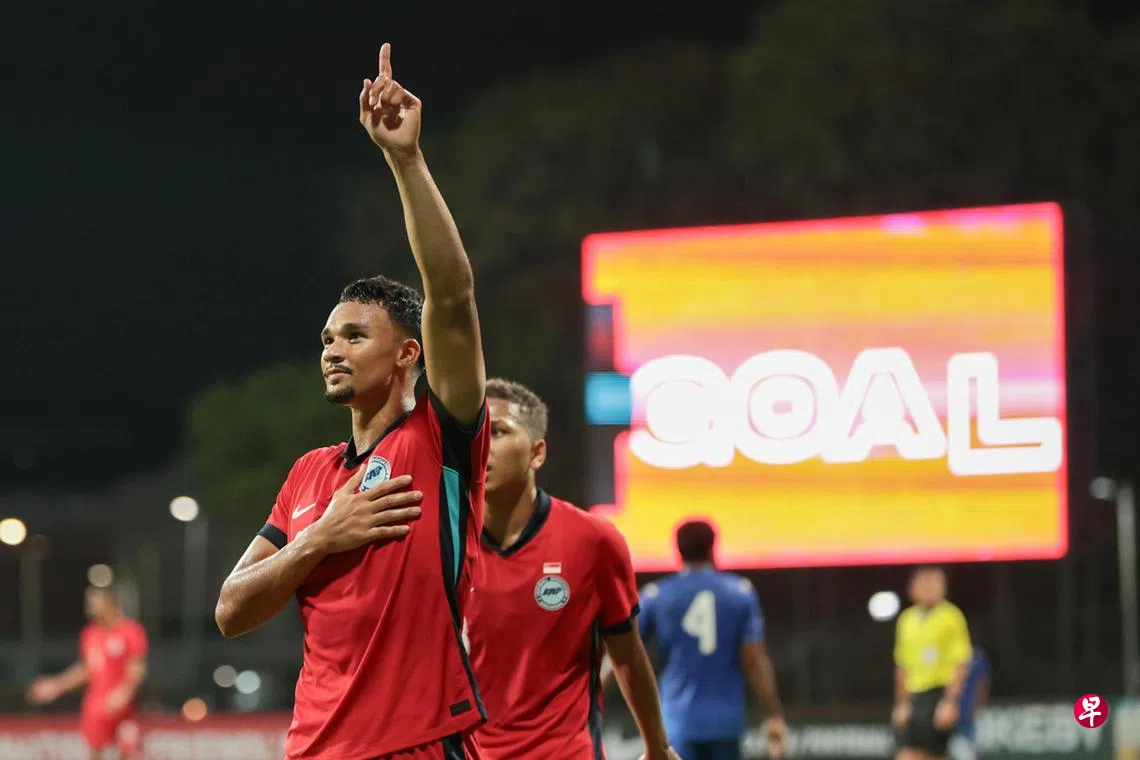 第20分钟,雄狮中场哈里斯·史提沃特(Harhys Stewart)左路传中,禁区内的伊山·范迪(Ikhsan Fandi)高高跃起,完成头球破门,为雄狮将领先优势扩大到两球。