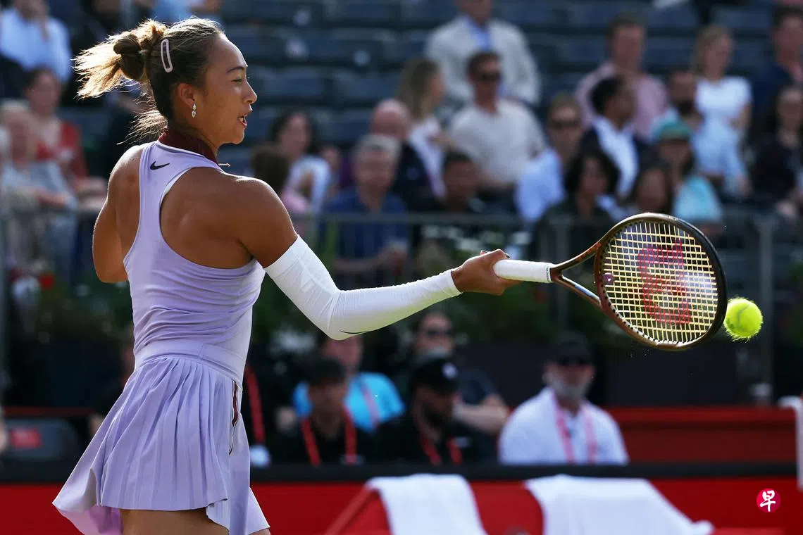 (伦敦综合电)中国头号种子郑钦文在新加坡时间星期五(6月13日)凌晨举行的女王俱乐部网球锦标赛女单16强赛中,以6比3、4比6、7比5险胜世界排名第42位的美国选手麦卡特尼·凯斯勒(McCartney Kessler),成功晋级八强。
