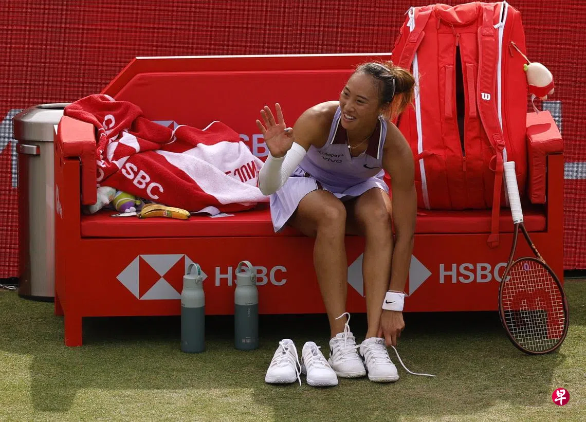 (伦敦综合电)中国奥运冠军郑钦文在新加坡时间星期六(6月14日)凌晨的女王俱乐部网球赛复赛中以6比2、6比4击败英国本土宠儿艾玛·拉杜卡努(Emma Raducanu),职业生涯首次打进草场赛四强。