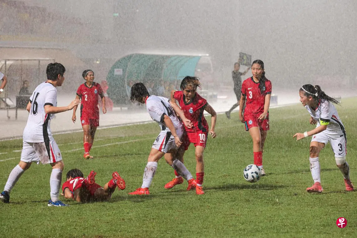 “雌狮”新加坡国家女子足球队在星期天(6月15日)傍晚5时于蔡厝港体育场与香港女队进行的友谊赛因雷雨的到来两次中断,比赛在雌狮落后一球的情况下提前结束。