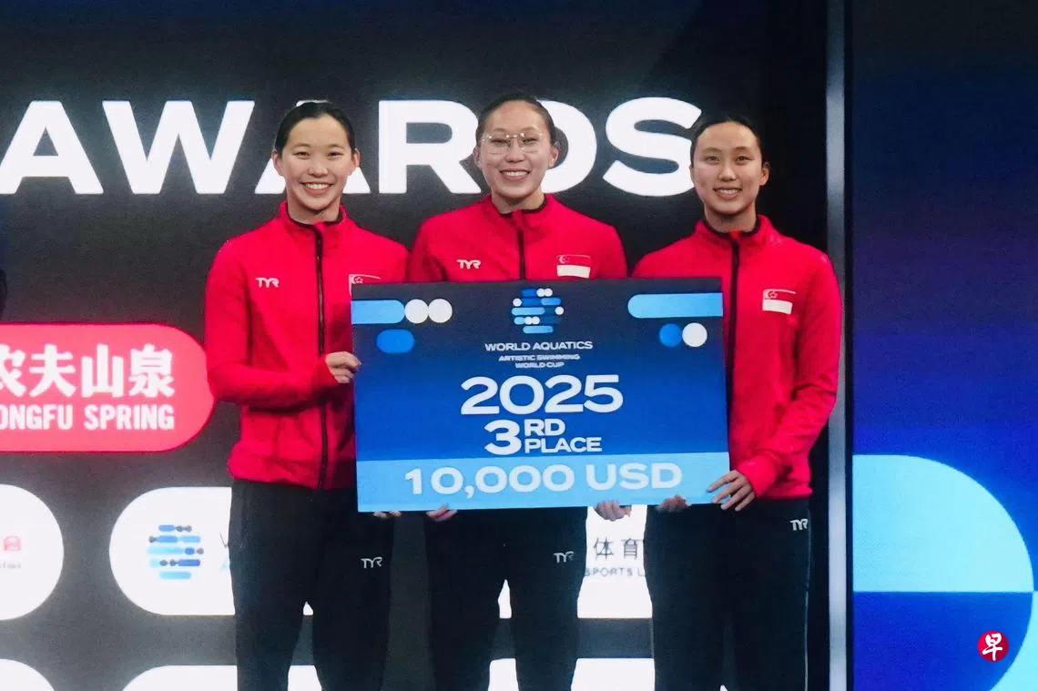 凭借在整个系列赛中展现出的稳定表现,我国女子花游队张嬿、李家嫙和苏俐妃为新加坡赢得一枚宝贵的铜牌。