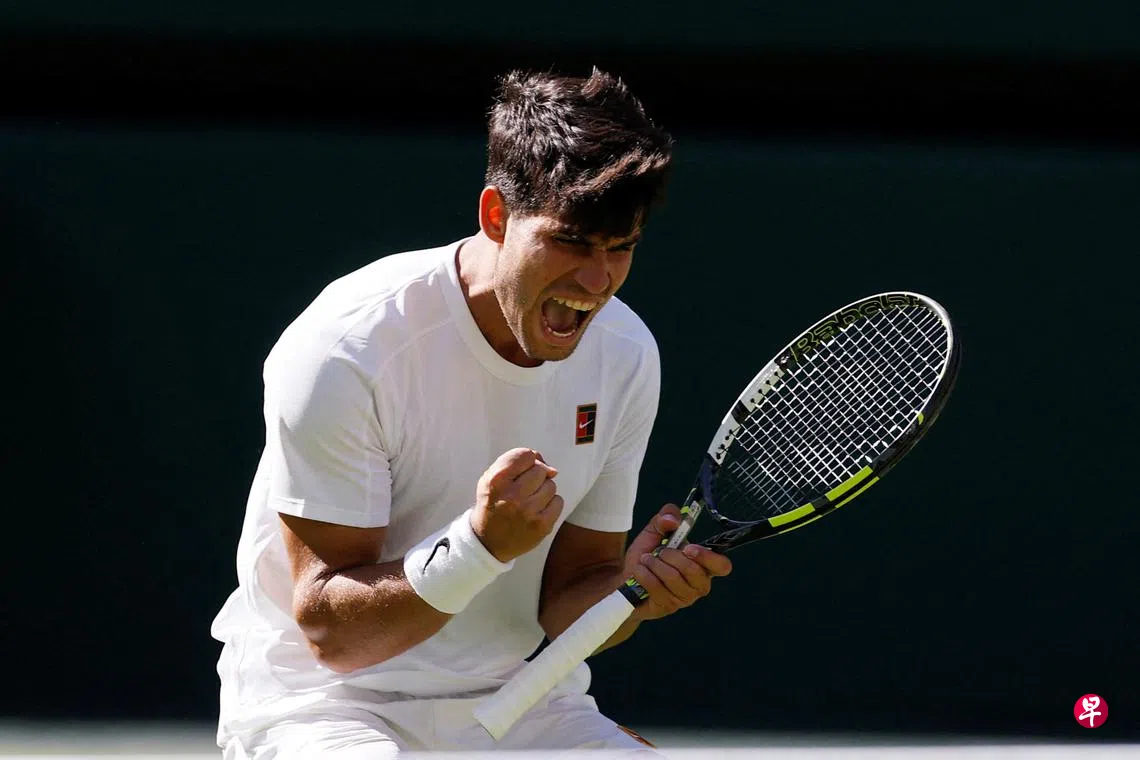 (伦敦综合电)在新加坡时间星期一(6月30日)进行的温布登网球锦标赛男单正赛首轮比赛中,卫冕冠军、西班牙好手阿尔卡拉斯(Alcaraz)以7比5、6比7(5比7)、7比5、2比6、6比1的比分,力克38岁的意大利老将弗格尼尼(Fognini),豪取巡回赛19连胜。