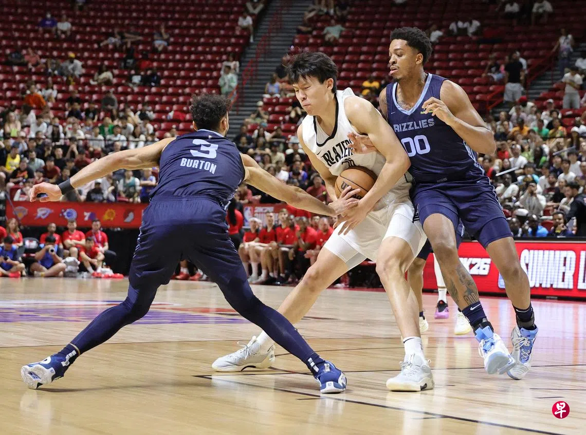 (拉斯维加斯综合电)波特兰拓荒者(Portland Trail Blazers)在美国时间星期六(7月12日)的夏季联赛上86比96不敌孟菲斯灰熊(Memphis Grizzlies),中国籍中锋杨瀚森拿下10分与摘下五个篮板球,同时也作出三次助攻与一次封挡。