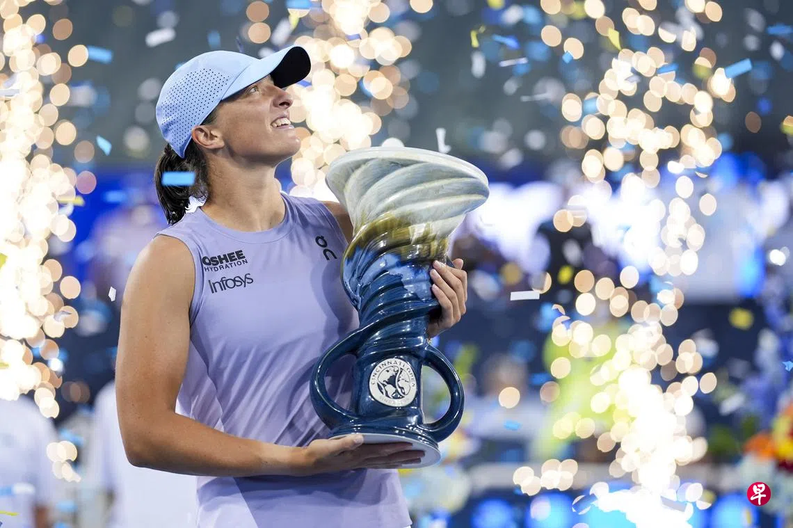 (辛辛那提综合电)波兰名将伊加·斯瓦泰克(Iga Swiatek)在新加坡时间星期二(8月19日)进行的辛辛那提网球公开赛女单决赛中,以7比5、6比4击败意大利女将贾斯明·保利尼(Jasmine Paolini),首次赢得该赛事冠军。