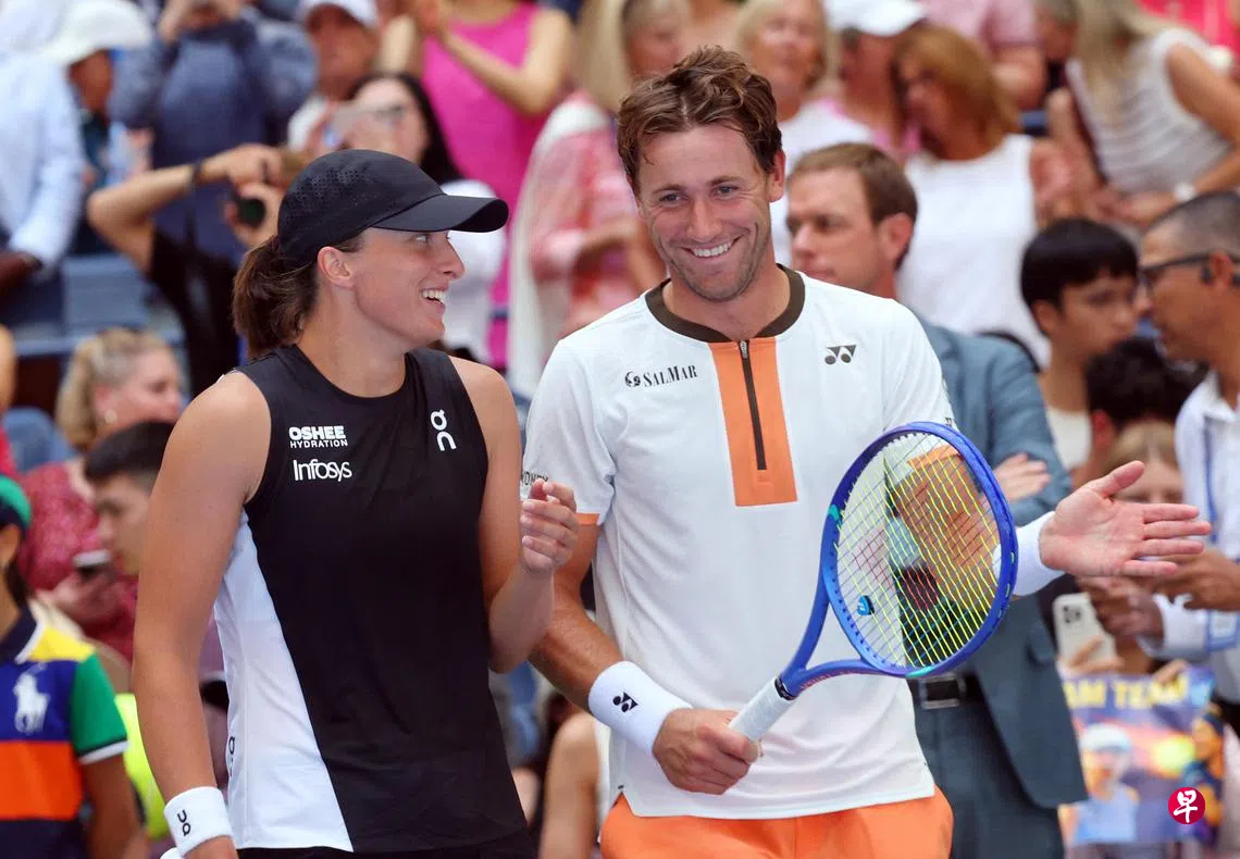 在星期三(8月20日)于纽约结束的美国网球公开赛混双八强赛中,波兰女将伊加·斯瓦泰克(Iga Swiatek)搭档挪威好手鲁德(Ruud),以4比1、4比2直落两盘战胜凯蒂·麦克纳利(Caty McNally,美国)/穆塞蒂(Musetti,意大利),挺进四强。