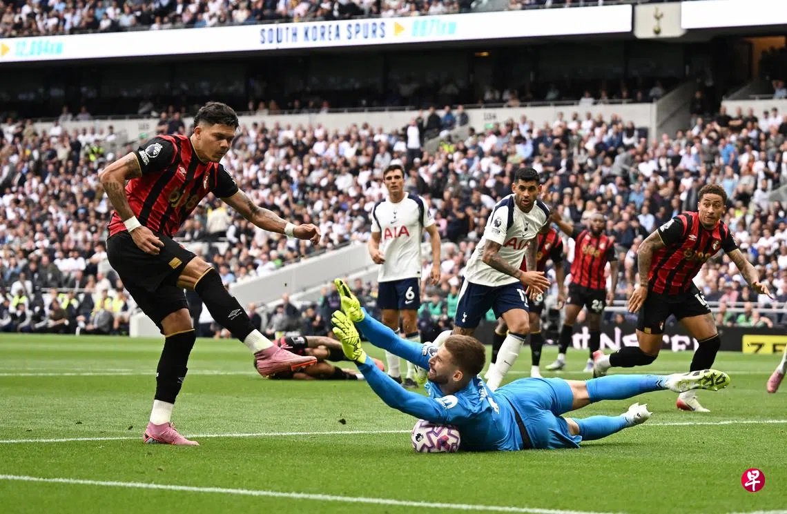 热刺此前两场比赛分别战胜伯恩利(Burnley)和曼市(Manchester City),若此役能胜出将可暂时登顶联赛头名。不过,在这场焦点战中,他们未能延续良好状态,伯恩茅斯凭借埃瓦尼尔森(Evanilson)在第五分钟的闪电破门,将1比0的比分维持到终场哨声响起。