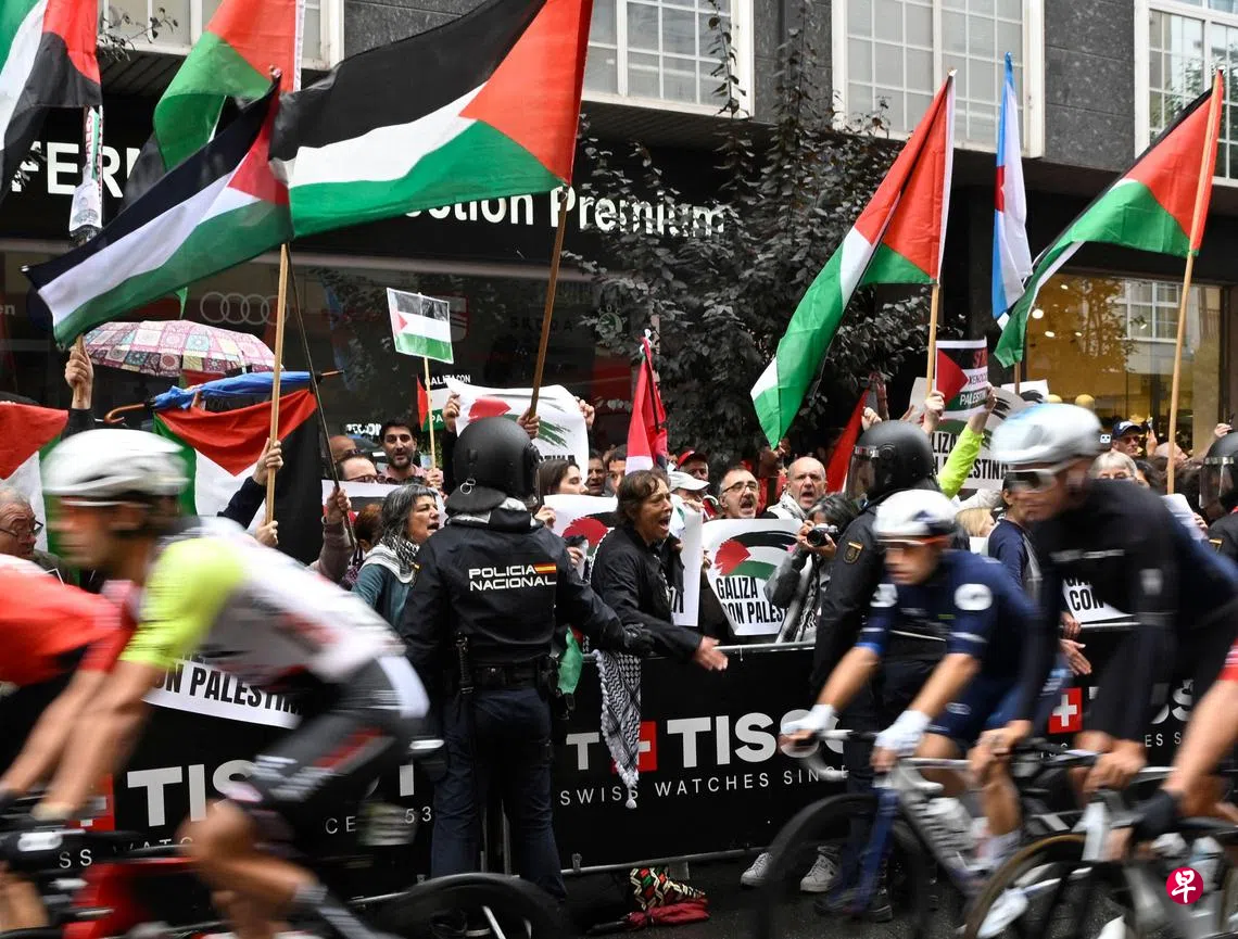 环西班牙脚踏车赛将在星期天(9月14日)结束,不过亲巴勒斯坦的示威者频频干扰比赛,星期二(9日)进行的第16赛段因终点附近出现大规模抗议而缩短了八公里。尽管如此,赛事总监强调比赛会如期结束。