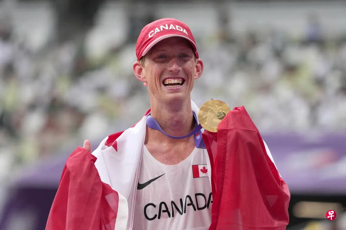 (东京路透电)世界田径锦标赛星期六(9月13日)掀开序幕,加拿大的邓菲(Dunfee)和卫冕冠军西班牙的玛丽亚·佩雷斯(Maria Perez)在男女竞走项目夺得赛会首两金。这是东京在空城举办2021年奥运会后再次迎来大赛,居民反应热烈。