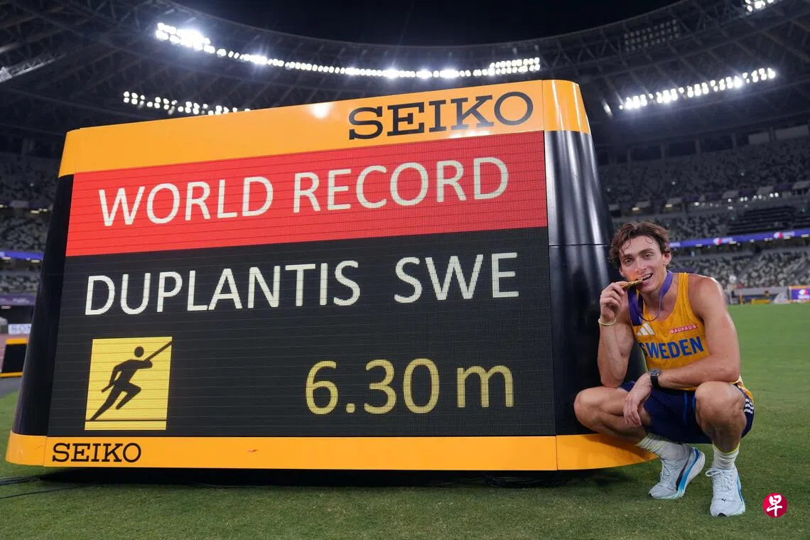 (东京路透电)瑞典名将杜普兰蒂斯(Duplantis)星期一(9月15日)在东京世界田径锦标赛以6米30的成绩创下世界纪录,并完成世锦赛三连冠。