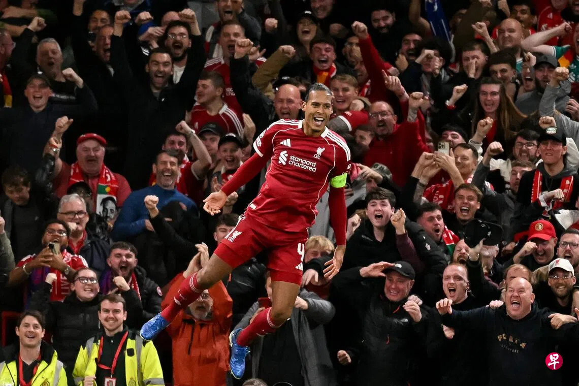 不过在前四场英超都凭借80分钟后的进球取胜的红军,再次将好戏留到最后。范戴克在补时第二分钟接应索博斯莱(Szoboszlai)的角球头球破门,助红军全取三分。