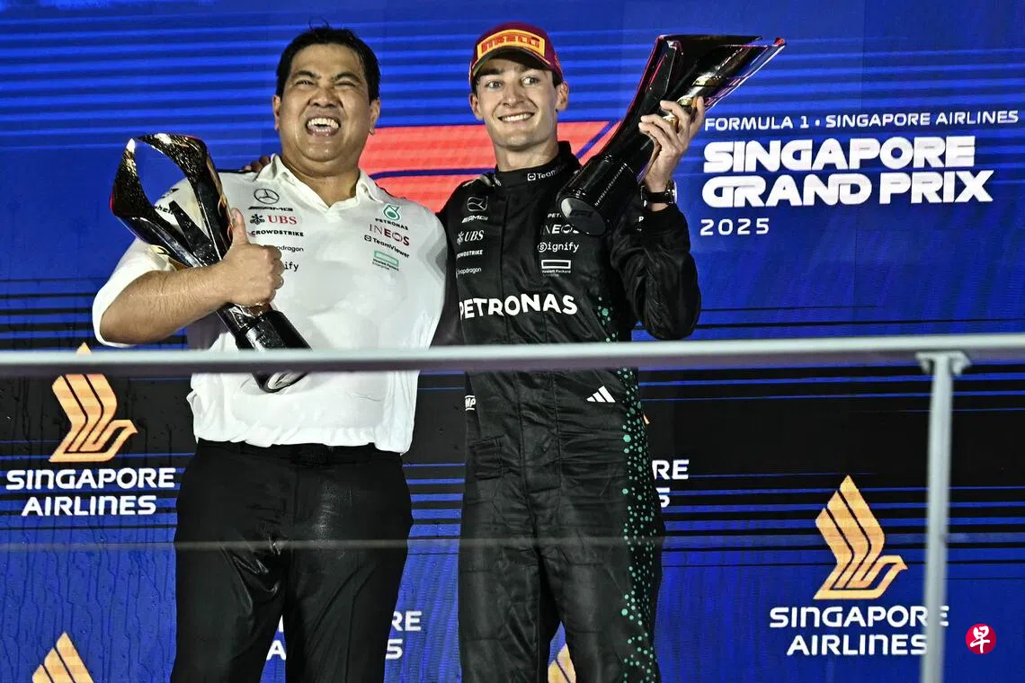 F1喷洒香槟庆祝的传统可追溯至1950年代,星期天(10月5日)当马赛地车手拉塞尔(George Russell)摘下冠军时,与马赛地合作的国油总裁莫哈末道菲在领奖台上与众人庆祝,他一同参与喷洒香槟的画面引发批评。