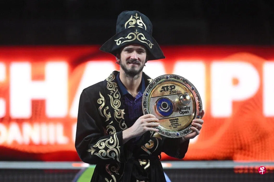 (阿拉木图法新电)世界排名已跌至第14的前世界第二梅德韦杰夫(Medvedev)终于在星期天(10月19日)结束了他长达882天的冠军荒,在ATP250级别的阿拉木图网球公开赛中以7比5、4比6、6比3战胜法国选手穆泰(Moutet)夺冠。