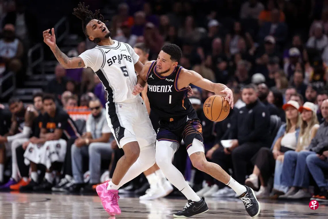 太阳在第三节建立了31分的领先后顺利取胜,同时也成功限制了马刺新星文班亚马(Wembanyama)的发挥。后者全场14投仅4中,仅入账9分,并有6次失误。
