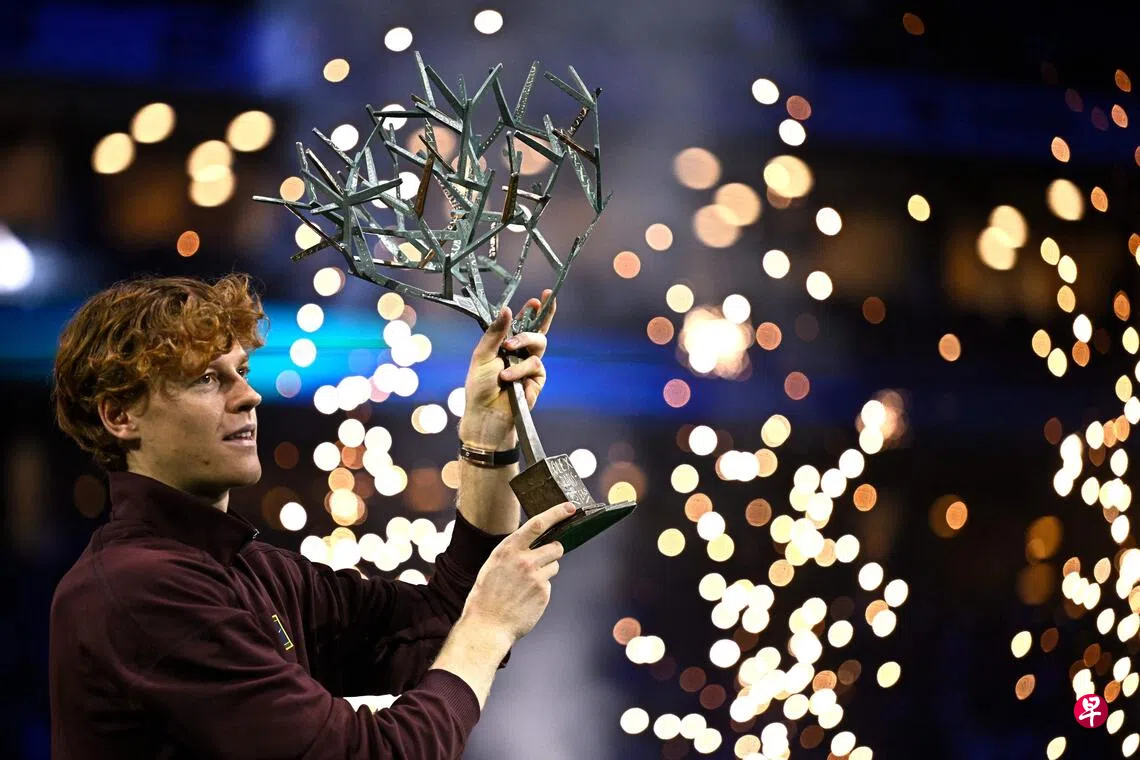 (巴黎综合电)在新加坡时间星期天(11月2日)晚进行的巴黎网球大师赛男单决赛中,赛会二号种子、意大利网球名将辛纳(Sinner)以6比4、7比6(4)战胜九号种子、加拿大好手奥热—阿利亚西姆(Auger-Aliassime),首度夺得这项男子职业网球协会(ATP)1000级别赛事的冠军,也因此重登世界第一宝座。