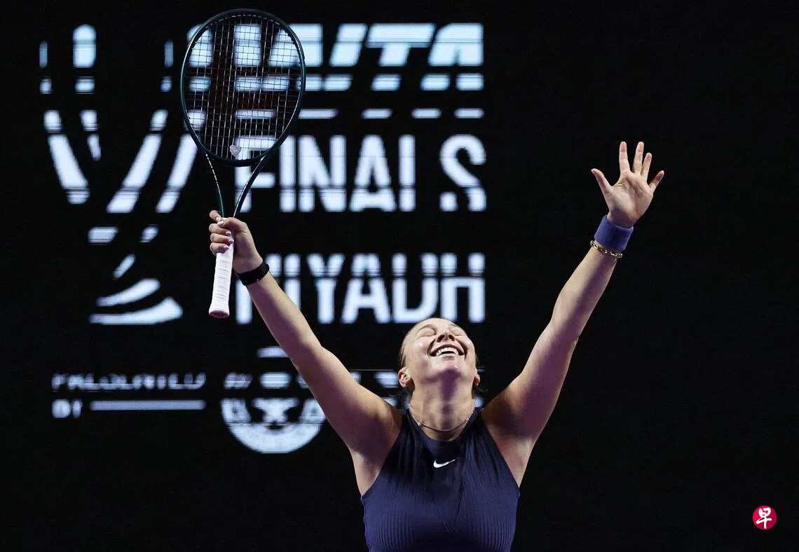 (利雅得路透电)美国女将阿曼达·阿尼西莫娃(Amanda Anisimova)星期三(11月5日)在女子职业网球员协会(WTA)年终总决赛的“生死战”中力挽狂澜,以2比1逆转击败波兰名将伊加·斯瓦泰克(Iga Swiatek),晋级四强。