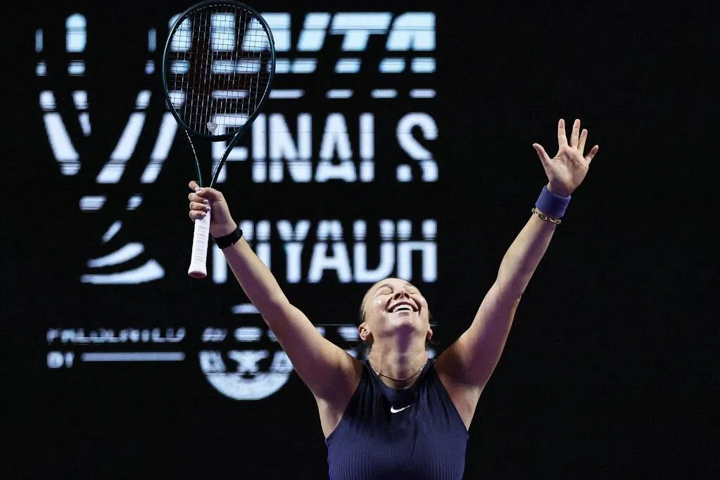在第三盘中,阿丽娜凭借连续的发球直接得分保发至3比3,并在接下来的发球局中用一记强力反拍赢得关键破发。尽管在收尾阶段一度相当惊险,但阿丽娜最终还是顶住压力,赢下比赛,继2022年后再闯入WTA总决赛决赛。
