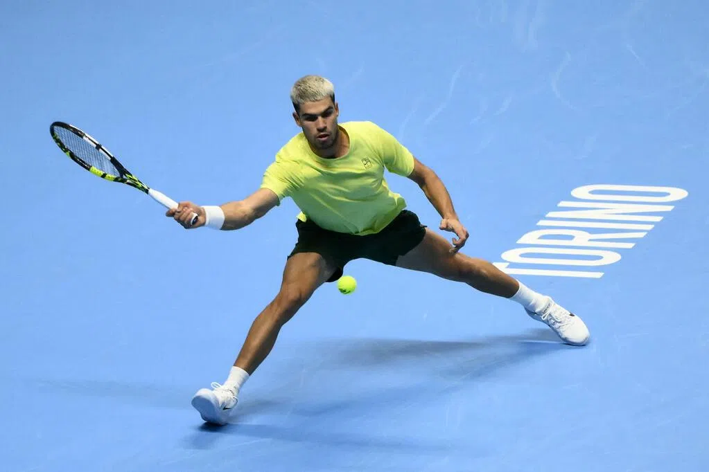 (都灵综合电)西班牙好手阿尔卡拉斯星期二(11月11日)在男子职业网球协会(ATP)年终总决赛上,上演了一场惊心动魄的对决,在落后一盘的情况下以2比1逆转美国球员弗里茨(Fritz),距锁定年终世界第一仅一步之遥。