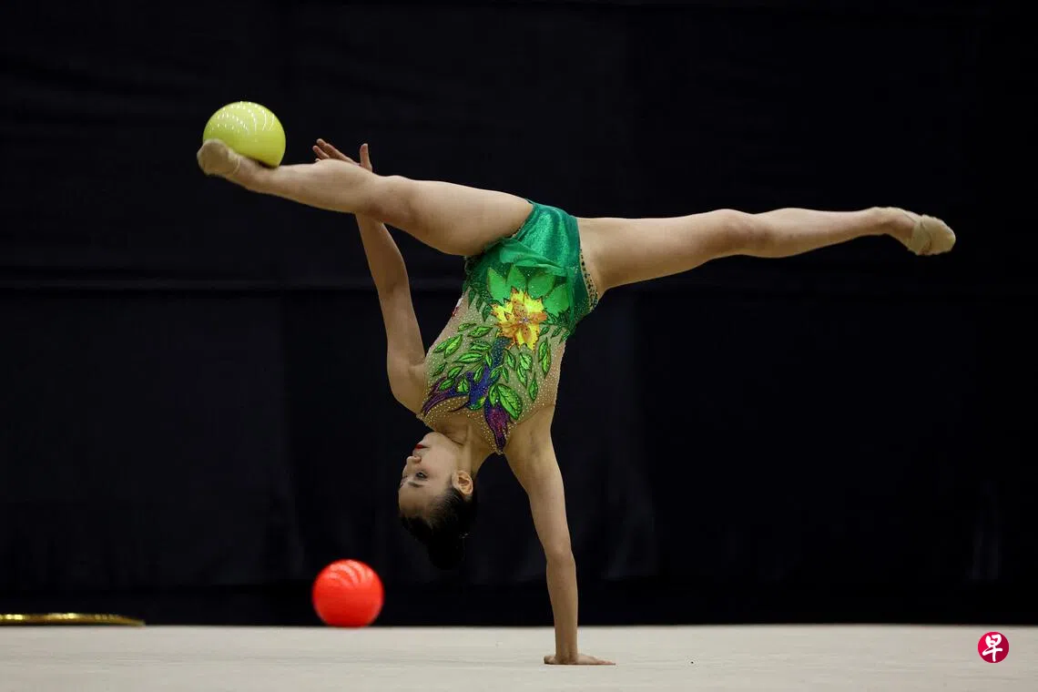在星期一(12月15日)举行的2025年泰国东运会女子艺术体操个人全能资格赛中,我国18岁小将杨慧婷以98.820分晋级决赛,将对金牌发起冲击。