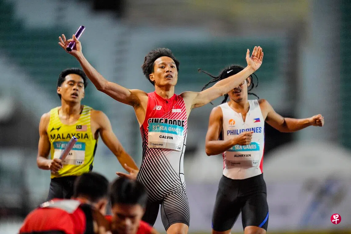 在泰国东运会田径项目的最后一个比赛日,已经夺金的我国好手郭俊杰再次发力,于星期二(12月16日)帮助新加坡在男子4x400米接力赛中后来居上夺铜。