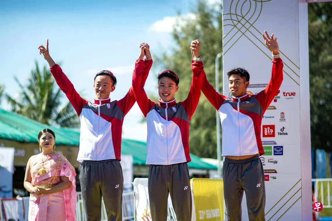 由蔡立荣、郑怿骏、钟昇哲组成的我国水陆两项男子接力队星期二(12月16日)在最后阶段无力支撑,于2025年泰国东运会中收下银牌。女队同日也入账铜牌。