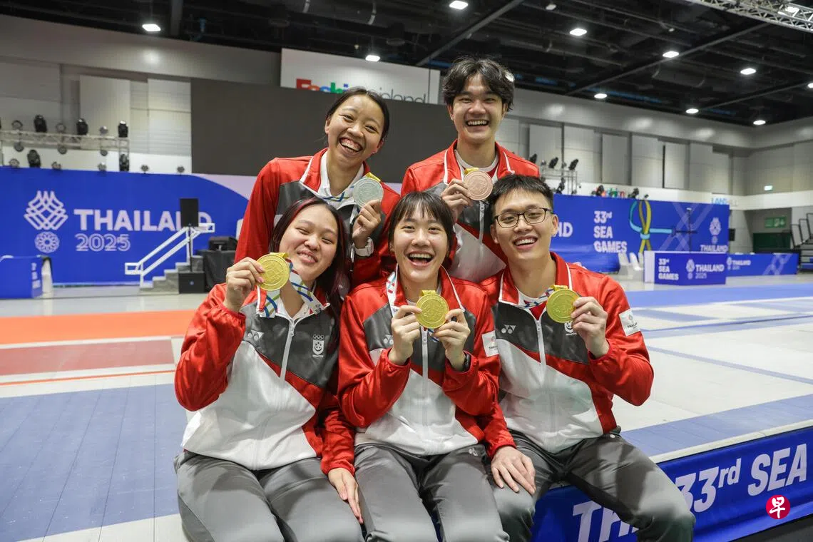 女子重剑金牌则由18岁的许渼荟在新加坡“姐妹战”中9比8打败25岁的师姐可丽雅,完成自己在这个项目的三连冠。首次参赛的20岁新秀陈元康,则成功捍卫由晨阳在上届夺得的男子花剑金牌。