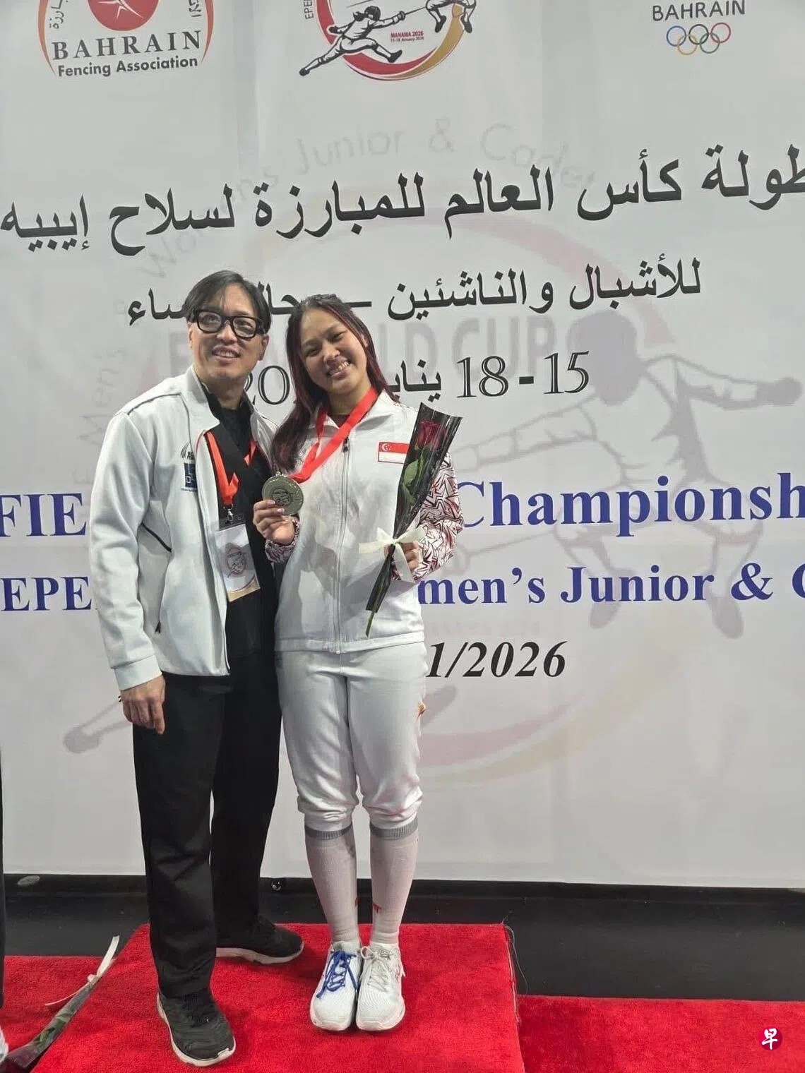 我国重剑队在巴林马纳马举行的击剑青年世界杯赛中表现出色,许渼荟星期六(1月17日)赢得女子个人重剑金牌,成为我国在青年世界杯重剑项目摘金的第一人,并在星期天(18日)的团体赛与队友携手获得第四。新加坡也是表现最好的东南亚队伍。