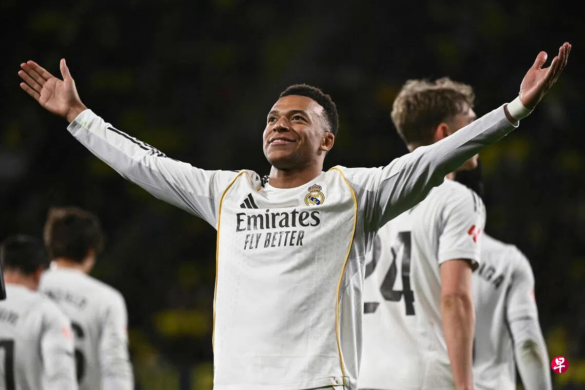 (比利亚雷亚尔综合电)法国球星姆巴佩(Mbappe)在下半场梅开二度,帮助皇家马德里(Real Madrid)在新加坡时间星期天(1月25日)以2比0战胜坐镇主场的“黄色潜水艇”比利亚雷亚尔(Villarreal),暂时超越宿敌巴塞罗那(Barcelona)登上西甲榜首。