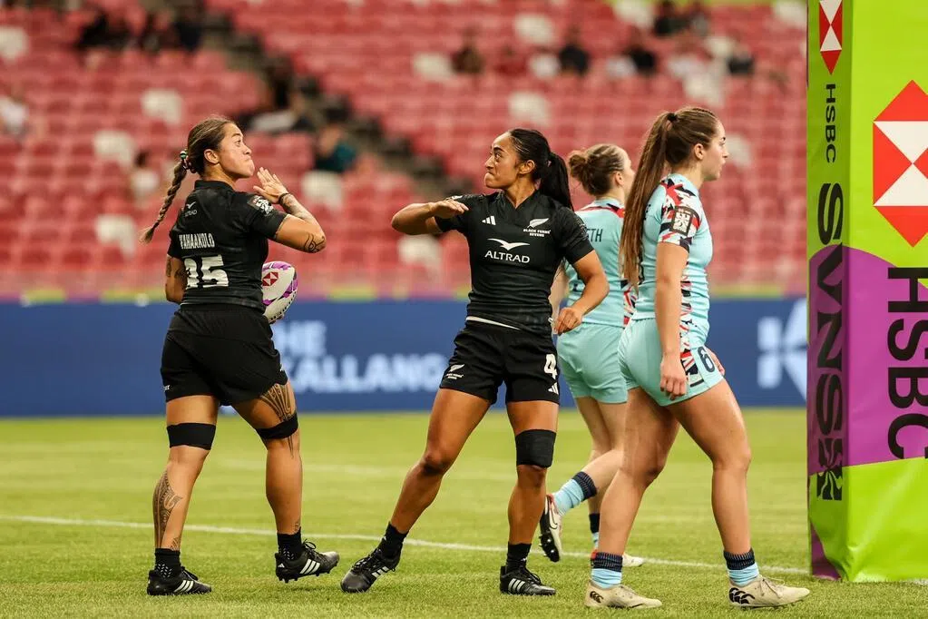 新西兰女队则延续首日“狂风扫落叶”的表现,半决赛以44比7轻取美国队。决赛面对老对手澳洲队,新西兰上半场就以24比0领先,下半场两队先后各得七分。但新西兰没再给对手机会,成功达阵(触地得分)并射门得手,终结比赛悬念,延续球队在狮城的不败纪录。