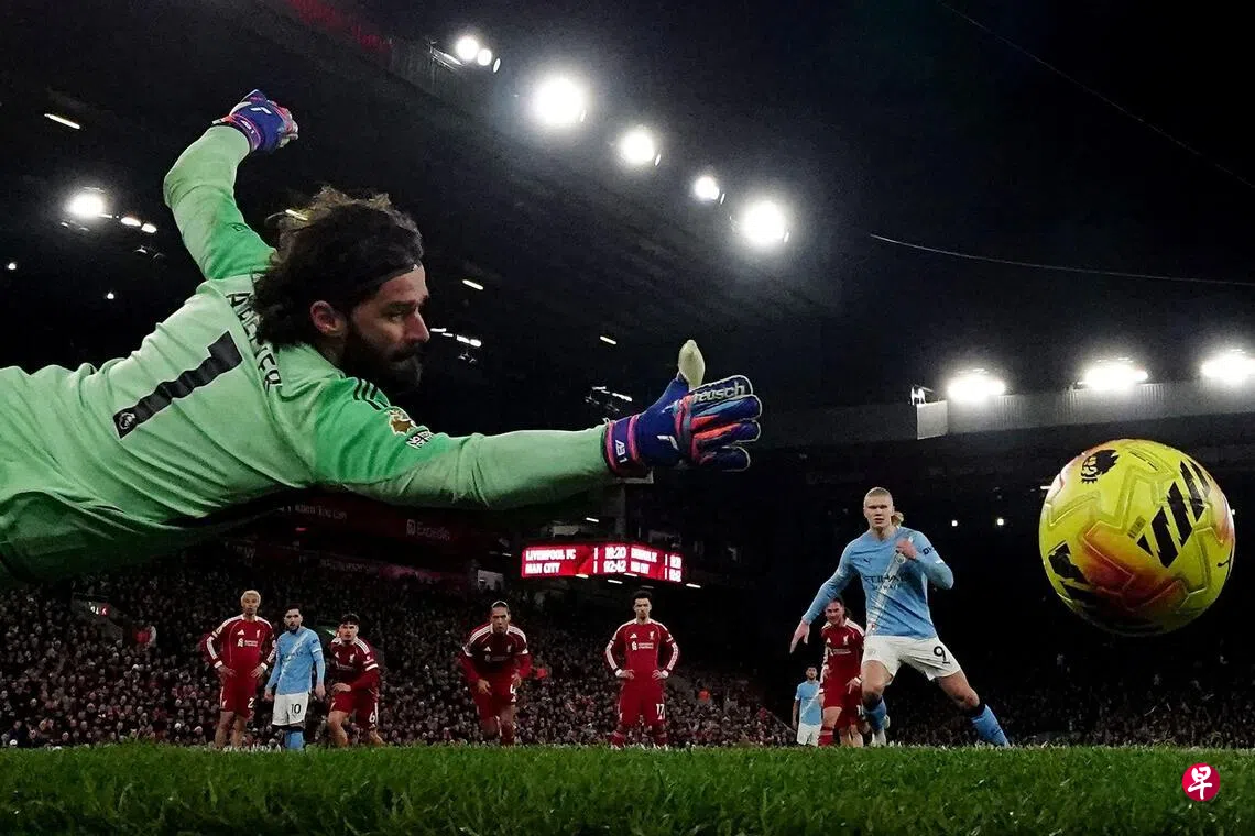 本以为要落败的曼市在10分钟后由席尔瓦(Silva)铲射破门,扳平比分。到了完场补时阶段,红军门将阿利森(Alisson)在禁区内撞倒曼市右卫努涅斯(Nunes),让客队获得罚球,主罚的哈兰德轻松命中,帮助曼市实现反超。